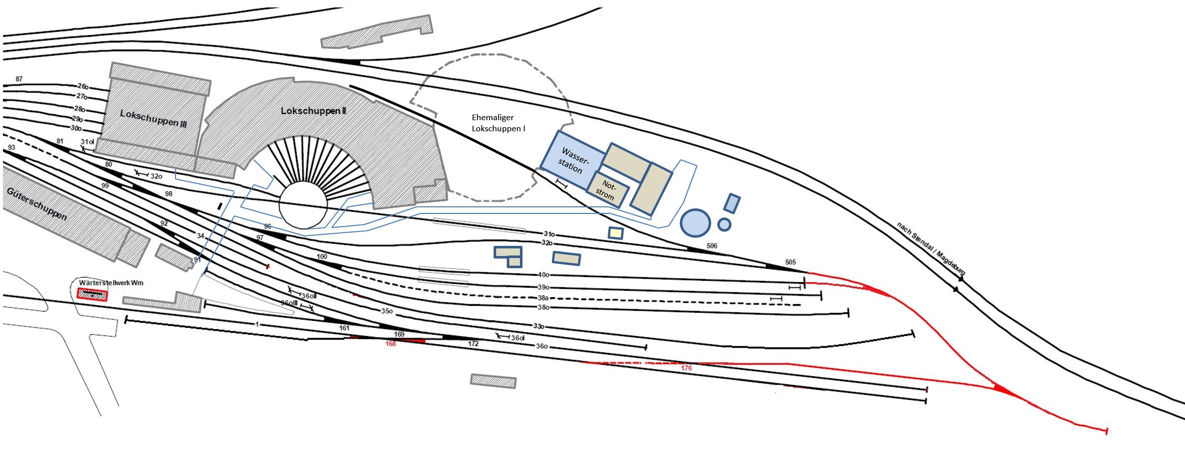 Die Drehscheibe ist das Herzstück des Museumsgeländes. Sie dient dazu, ankommende Lokomotiven zu drehen und somit auf die angrenzenden Lokschuppengleise zu verteilen. Die Anlage hat eine Tragfähigkeit von 350 Tonnen. Sie wird wahlweise elektrisch, per Druckluft oder per Muskelkraft angetrieben. Die Drehbrücke ist knapp 24 Meter lang und damit die größte in Deutschland noch existierende Anlage dieser Art.