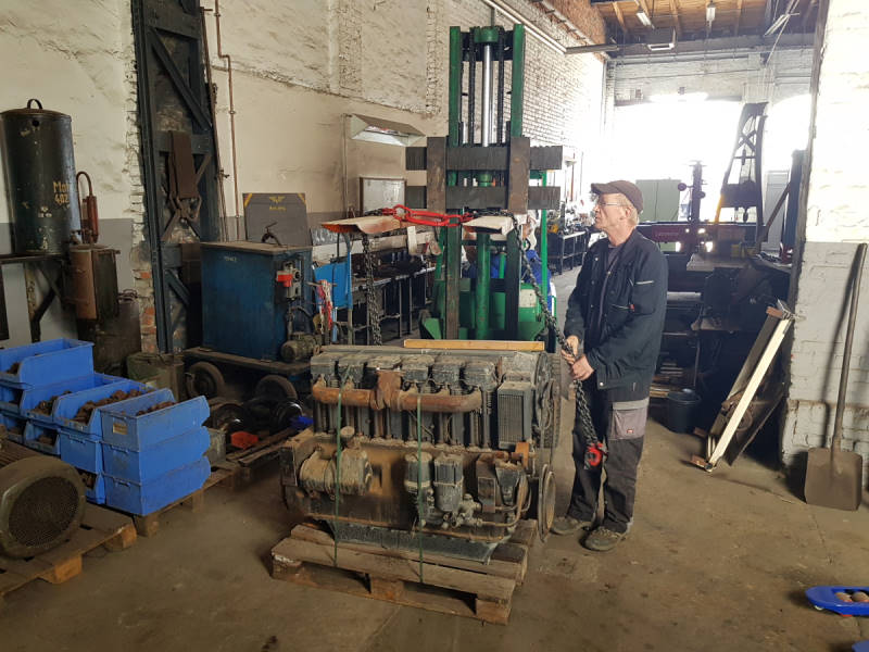 Some time ago we received two air-cooled diesel engines from GDR production, which are also used in shunting locomotives. We built transport frames for them. The engines are now being conserved and painted. One of them will be exhibited in our workshop. The other one will be stored.