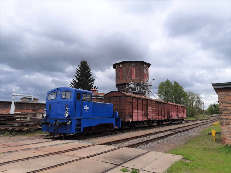 In the early evening we received a visit from the company "Erfurter Bahnservice", which has the order to bring a locomotive of our neighbours, the Railway Company Potsdam, to a railway museum in Weimar. For this purpose, a modern hybrid locomotive was used which draws the power for its traction motors from the overhead wire or from a built-in generator. Also on board were two passenger coaches to provide sufficient braking power, as the brakes of the exhibit to be transferred are no longer functional.