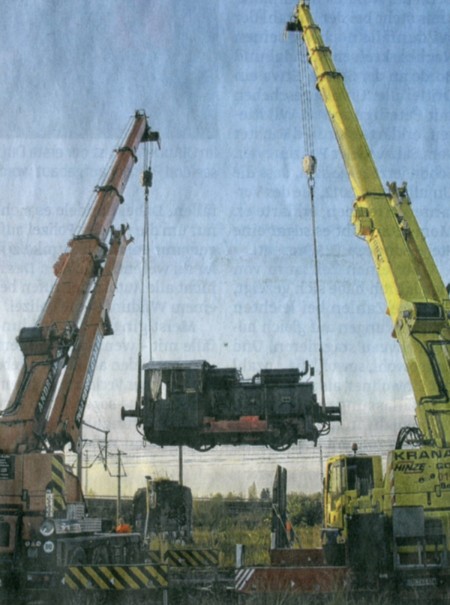Zwei Kräne hievten die Loks in die Höhe. Bis zu 20 Tonnen bringen die Dampfrösser auf die Waage. |