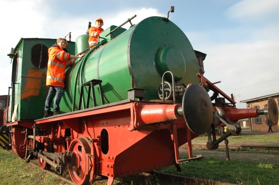 Salzwedel Andere putzen im Frühjahr, Familie Förster putzt im Herbst. Das liegt vornehmlich daran, dass Conny, Bernd und Sohn Robert stolze Besitzer von diversen Lokomotiven sind. Unter anderem gehört ihnen die ehemalige Werkslok des Kraftwerkes Herrenwyk, die am ehemaligen Bahnbetriebswerk Salzwedel geparkt ist. Und weil am Wochenende die Saison der Dampflokfreunde ausklang, brachten sie ihre liebevoll "Lotte" genannte Eisenbahn auf Vordermann für den Winterschlaf. Mit orangefarbenen Reflektorjacken bildete die Familie einen hervorragenden Kontrast zu ihrer grasgrünen Lok.